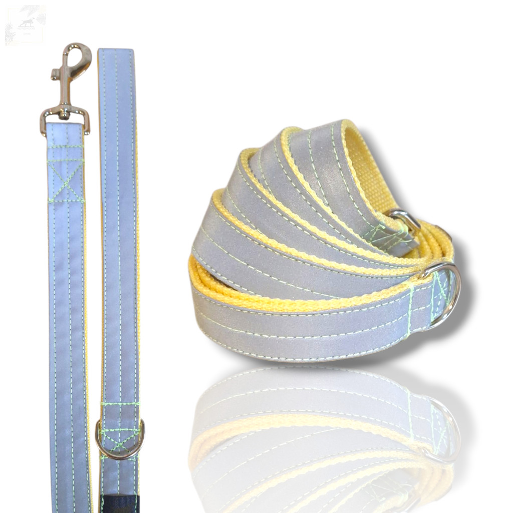 Gyönyörű élénk citromsárga póráz, fényvisszaverő réteggel, ami kimondottan jól jöhet esti séták alkalmával.